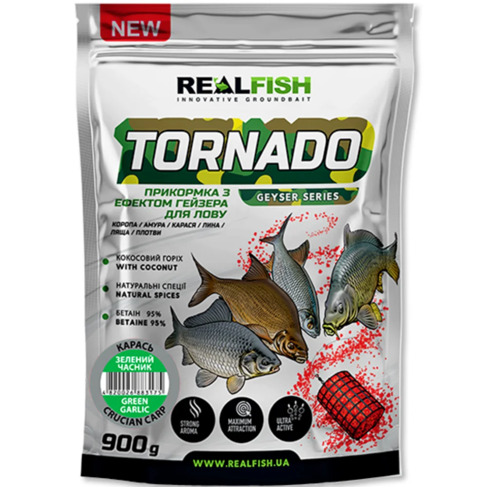 Прикормка RealFish Tornado Карась ЗЕЛЕНИЙ ЧАСНИК 900г з ефектом "гейзера"