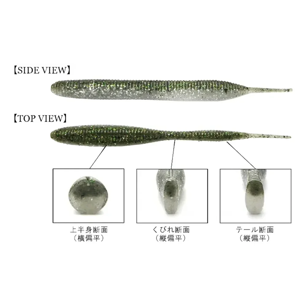 Sexy Impact – очень оригинальная приманка класса слаг. Ее тело имеет сложную форму: круглое в передней части, уплощенная в вертикальной плоскости задняя часть заканчивается длинным, тонким и очень подвижным хвостиком. Сверху находится специальная выемка для оффсетного крючка. Тело приманки сделано из двух видов силикона для лучшего баланса – сверху более легкий(без соли), снизу – более тяжелый(с солью). Sexy Impact – подходит для множества различных оснасток и проводок. Приманка отлично ведет себя на рывковой проводке с успехом имитируя мечущегося малька. Также можно использовать Sexy Impact на обыкновенной джиг головке, дроп-шоте, сплит-шоте, техасской оснастке.