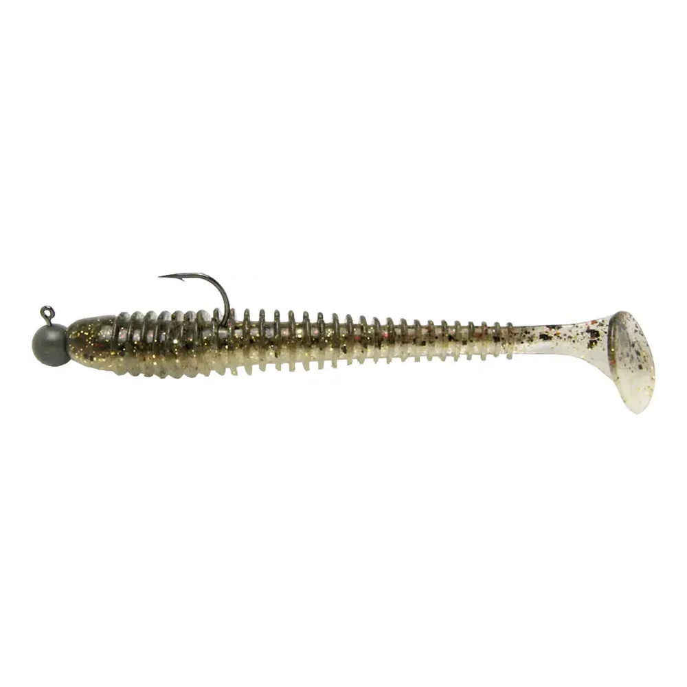 Swing Impact представляет собой виброхвост с удлинненым ребристым телом. Тело приманки имеет оригинальную форму, сечение отличается в передней и задней части приманки, что придает ей особую игру. Пятка виброхвоста очень подвижная и включается в игру при самой медленной проводке. Ребристость на теле приманки создает дополнительные возмущения в водной среде, привлекающие хищника с большого расстояния. Swing Impact изготовлен из очень мягкого «съедобного» силикона, пропитанного аттрактантом. Приманка выпускается в нескольких размерах Четырехдюймовый вариант отличается от меньших наличием прорези для офсетного крючка. Swing Impact можно использовать как на джиг-головке, так и на шарнирном монтаже с оффсетным крючком и на классическом техасе. Силикон Keitech Swing Impact 4.5" модели для ловли зачетного судака и щуки средних и больших размеров в периоды высокой активности рыбы. Габариты моделей оптимально соотносятся с грузилами, масса которых позволяет работать на значительных глубинах и сильном течении.