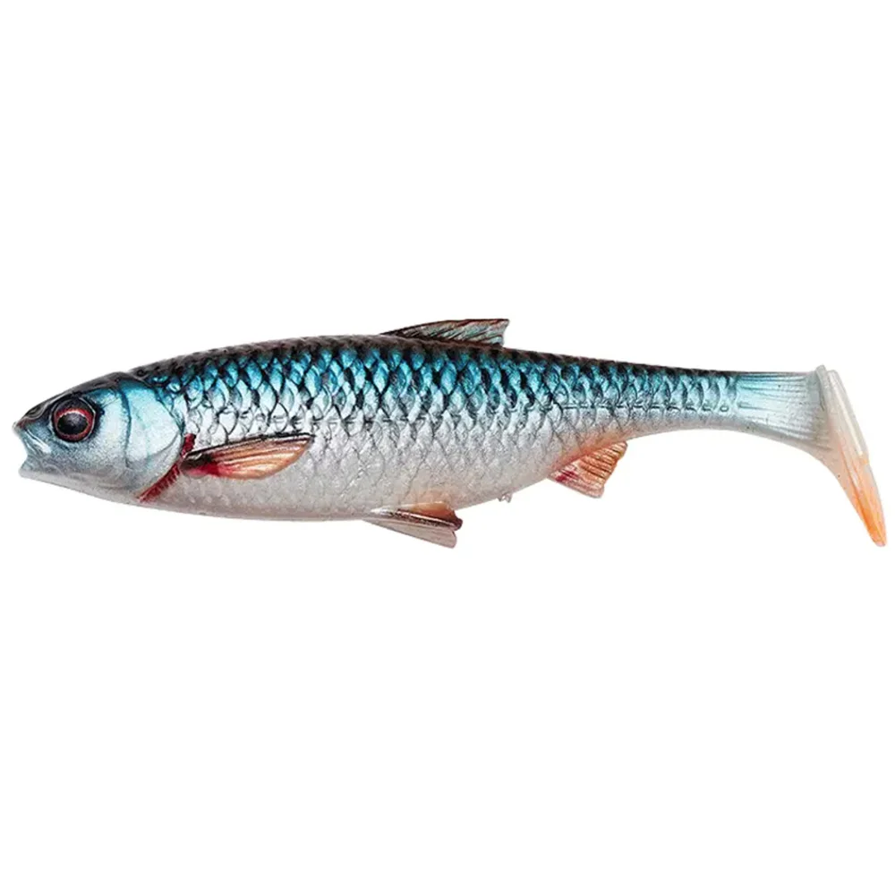 Силикон Savage Gear 3D River Roach - обновлённая модель виброхвостов, максимально напоминающих натуральную рыбу. Он выполнен путём 3D сканирования деталей, а его покрытие с помощью фотохромной печати создаёт эффект естественной расцветки малька, за которым охотится крупный хищник. Для дополнительной привлекательности материал пропитан ароматизатором, который будет дополнительно воздействовать на органы нюха рыбы. В теле силикона предусмотрен небольшой слот для размещения шумовой капсулы.