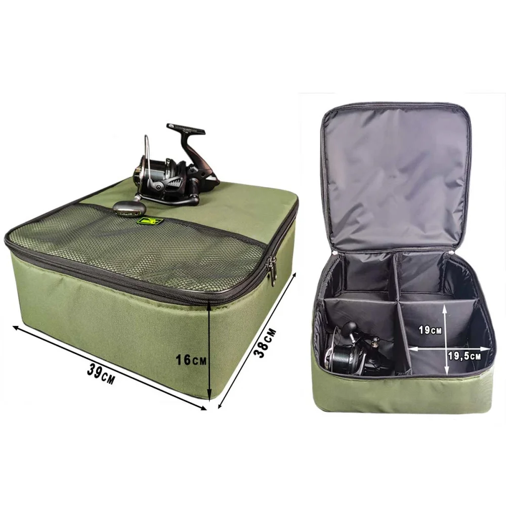 Сумка-чохол на 4 котушки до 17 000 - призначена для безпечного зберігання і транспортування безінерційних котушок для коропового або фідерного лову. На кришці сумки передбачена кишенька. Для зручного транспортування передбачена ергономічна прогумована ручка. Сумка виготовлена з міцної, водостійкої тканини PVC OXFORD D600. Сумка з легкістю вміщує 4 котушки розміром до 17 000 за нумерацією Shimano + додаткові шпулі.