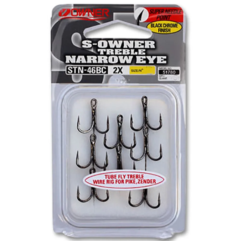 Owner Narrow Eye STN-46BC 2X 51780 – серия тройных крючков для ловли хищника, характеризующаяся широким круглым загибом, кованым поддевом, слегка укороченным цевьем и защитным покрытием Black Chrome. При относительно небольших размерах тройники Owner 51780 чрезвычайно прочные и надежные. Благодаря узкому колечку чрезвычайно популярны у нахлыстовиков для монтажа стримеров на трубках. Прекрасно подойдут для оснащения малогабаритных приманок и наживок, используемых в ловле трофейной рыбы. Усиленная конструкция крючка Owner STN-46, острейшие жала c заточкой Super Needle Point и нормальной величины бородки гарантируют эффективную подсечку и уверенное удержание любой клюнувшей рыбы.