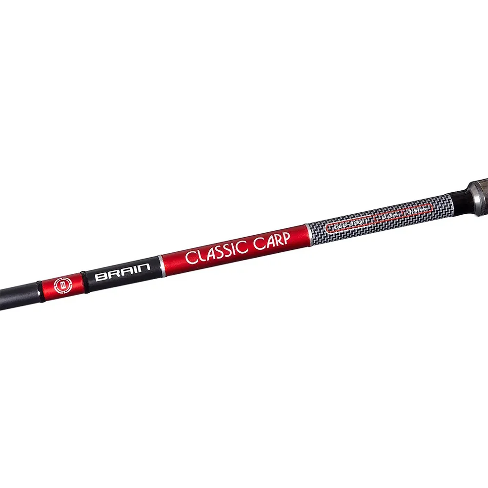 Удилище карповое Brain Classic Carp – модель начального уровня, для тех рыболовов, которые хотят попробовать себя в этом виде ловли или для тех, кто не привык тратить большие деньги на рыбалку. Не смотря на то, что бланк выполнен из композитного материала, он обладает довольно выразительным быстрым строем, позволяющим забрасывать оснастку на большое расстояние. Классические пропускные кольца увеличенного диаметра способствуют свободному вылету лески с минимальным сопротивлением. Твёрдые износостойкие вставки Siс, зафиксированные в стальных оправах, одинаково эффективно работают как с лесками, так и с плетёными шнурами. Удилище имеет довольно длинную рукоятку для удобного хвата во время заброса, на нижней части которой находится вставка из мягкого нескользящего материала. Для установки катушки предусмотрен стандартный винтовой катушкодержатель с металлическими усиливающими кольцами, повышающими его надёжность.