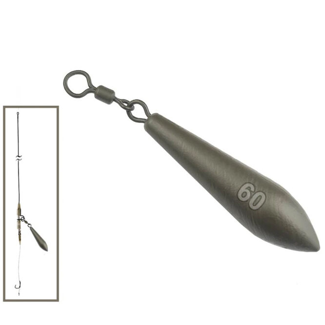 Груз карповый "Пуля" - благодаря форме "вытянутая капля" и нижнему центру тяжести отличается превосходными полетными характеристиками. Применяется рыболовами в разнообразных карповых монтажах типа: Helicopter Rig, Safety Clip Rig, Heli Rigs. Рекомендуется использовать на водоемах без течения на ровных участках дна водоема. Камуфляжный цвет не создает бликов и хорошо маскирует груз на большинстве типов дна, тем самым не пугая осторожную рыбу. Покрытие груза имеет высокую износостойкостью. Груз оснащается мощным вертлюгом с большим кольцом, который предотвращает перекручивание и спутывание снасти.