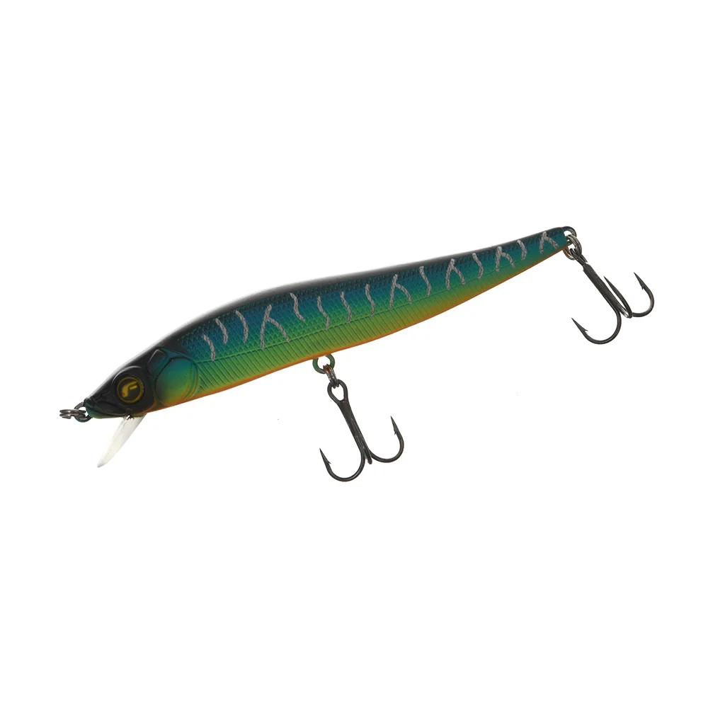 Отличная приманка для быстрого и эффективного облова обширных мелководий. Это воблер minnow вытянутой формы, весит он 9 г и имеет длину 98 мм. Благодаря системе дальнего заброса летит не только далеко, но и очень точно. Подвижные стальные шарики при забросе уходят далеко в хвост и сильно смещают туда центр тяжести. При первом же рывке они возвращаются на место и фиксируются специальным приливом снизу, благодаря чему при проводке балансировка остается неизменной. Шарики издают относительно негромкий звук высокой частоты. Воблер обладает собственной игрой, но равномерная проводка не выступает основной, его специализация – твичинг. При рывках Bossy совершает длинные «заплывы» по инерции, имеющие сложную траекторию. Причем, он сразу резко отклоняется в сторону, и амплитуда его движений получается очень большой. Bossy – суспендер, после остановки движения он зависает в толще воды. Длительные паузы нередко провоцируют на атаку щуку и крупного окуня. Лобовое сопротивление воблера не слишком велико, поэтому для рывковой проводки нет необходимости использовать сверхжесткие удилища.