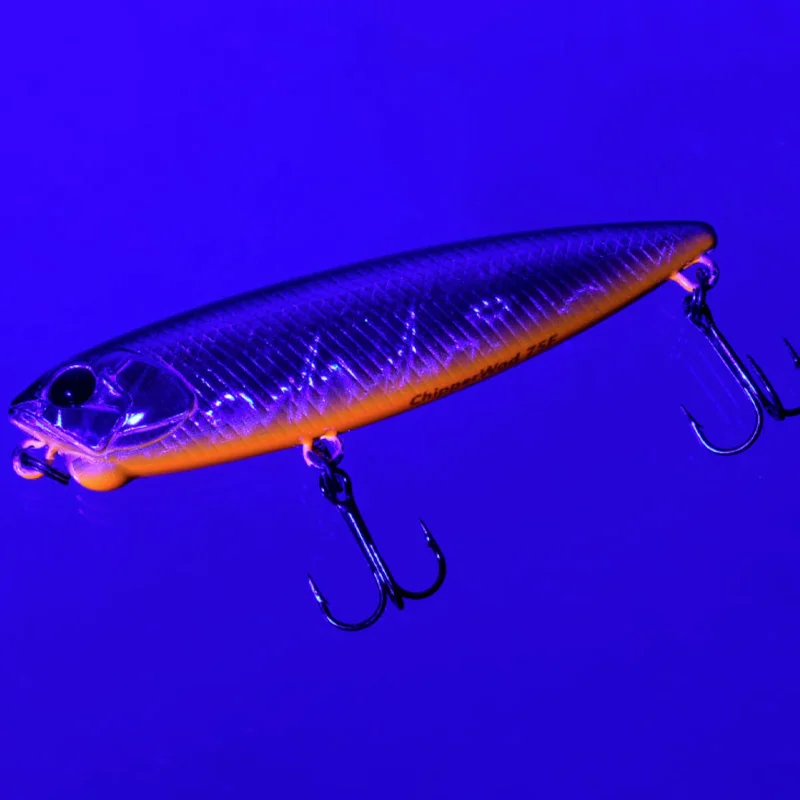 Воблер Flagman ChipperWod – эффективная классическая приманка класса уокер, предназначенная для ловли хищника с поверхности воды. Изготовлена из высококачественного пластика, имеет прочную многослойную окраску, оснащена усиленными заводными кольцами и острейшими крючками VMC. В передней части этого воблера расположена специальная выпуклая полусфера, благодаря которой приманка создаёт дополнительные завихрения, заставляющие её эффектно рисовать «змейку» даже на самых медленных проводках. Такая особенность значительно упрощает управление во время проводки Walking The Dog даже в условиях волнения на поверхности воды. Как и все приманки данной концепции при проводке ведёт себя довольно шумно: плещется, пускает пузыри, иногда практически полностью выскакивает из воды, а потом громко туда плюхается. Центр тяжести Flagman ChipperWod расположен в задней части, что обеспечивает отличные аэродинамические характеристики. Кроме этого, в теле приманки оборудована шумовая капсула, благодаря которой создаются звуки, привлекающие хищника с больших расстояний. Ряд моделей Flagman ChipperWod покрыты 3D фольгой («битое стекло»), а также уникальной краской, которая светится в ультрафиолете. Это прекрасные приманки для поверхностной охоты на окуня, щуку и жереха на водоёмах самого разного типа. Доступны в размерах 65, 75 и 100 мм с весом 5.5, 8 и 14 грамм соответственно.