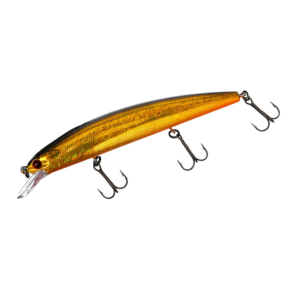 Flagman Hellcat 110SP – уловистый воблер класса minnow, который можно смело назвать грозой щуки! Этот шумящий суспендер длиной 110 мм изготовлен из высококачественного пластика, имеет прочную многослойную окраску и оснащён тремя острейшими крючками VMC. Он превосходно ловит на течении и в стоячей воде. Для воблера Flagman Hellcat 110SP рекомендуются равномерная, твичинговая или джерковая проводки. Во время рывковых проводок приманка мечется из стороны в сторону, как раненая рыбка, а на паузе зависает в толще воды головой вниз, демонстрируя затухающий роллинг. Такое поведение провоцирует хищника на немедленную атаку. При медленной равномерной проводке воблер также имеет привлекательную игру: вальяжно раскачивается из стороны в сторону. Flagman Hellcat 110SP имеет систему дальнего заброса и балансировки ABS (Advanced Balance System), которая удерживает воблер в стабильном положении на любой скорости проводки. Кроме того, ряд моделей Hellcat покрыты 3D фольгой («битое стекло»), а также уникальной краской, которая светится в ультрафиолете, отчего воблер буквально сияет всем телом в толще воды, привлекая хищника с больших расстояний и провоцируя на атаку. Такой воблер, в первую очередь, заинтересует любителей ловли щуки. Впрочем, и охотники на судака по достоинству оценят возможности уникальных приманок Flagman Hellcat!