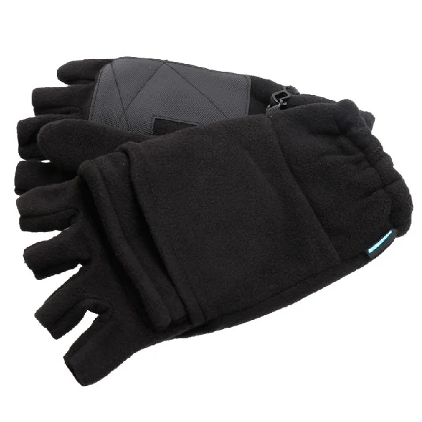 Унікальні рибальські рукавички, які можна трансформувати залежно від потреб власника в даний момент. Виготовлені за технологією Termo Max Microclimate Control, вони мають двошарову конструкцію: зовнішній шар із флісу у поєднанні з підкладкою з утеплювача Thinsulate (від найвідомішого хімічного концерну 3М), який забезпечує відведення вологи та збереження тепла. Кінчики пальців (крім великого) залишаються відкритими, кінчик великого пальця можна відкрити або закрити – для цього передбачено спеціальний проріз. Щоб захистити від холоду інші пальці, коли не потрібно виконувати складні маніпуляції з оснащенням, рукавички забезпечені відкидною частиною, що перетворює їх на рукавиці. Ця частина легко і швидко відкидається і в такому положенні фіксується за допомогою кишеньки. Рукавички забезпечені резинками-манжетами, які сприяють збереженню тепла та запобігають попаданню всередину снігу. З внутрішньої сторони, на долонях, рукавички обшиті зносостійким матеріалом, що не ковзає. Вони чудово підійдуть для лову в холодну, зимову погоду.