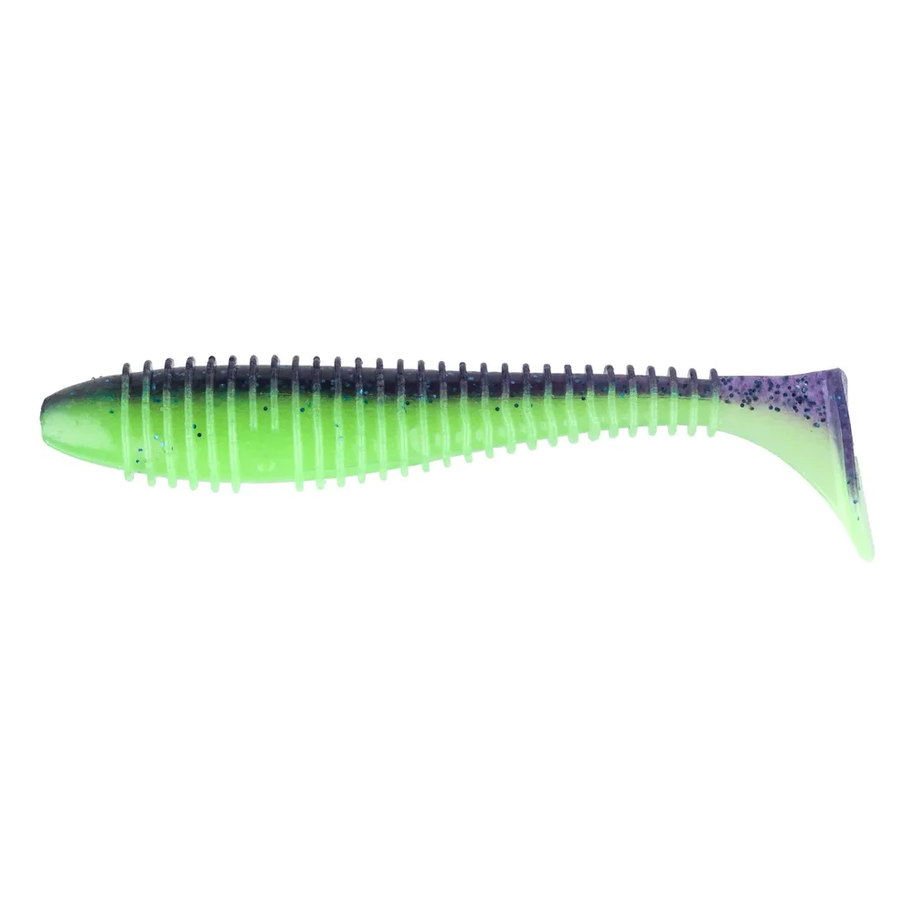 Характеристики товару: Тип приманки: Віброхвіст Довжина загальна, дюйм: 3.8 Кількість в упаковці, шт: 6 Колір товару: PAL#06 Violet Lime Berry Спеціалізація: Щука ,: Судак Довжина загальна, мм: 97