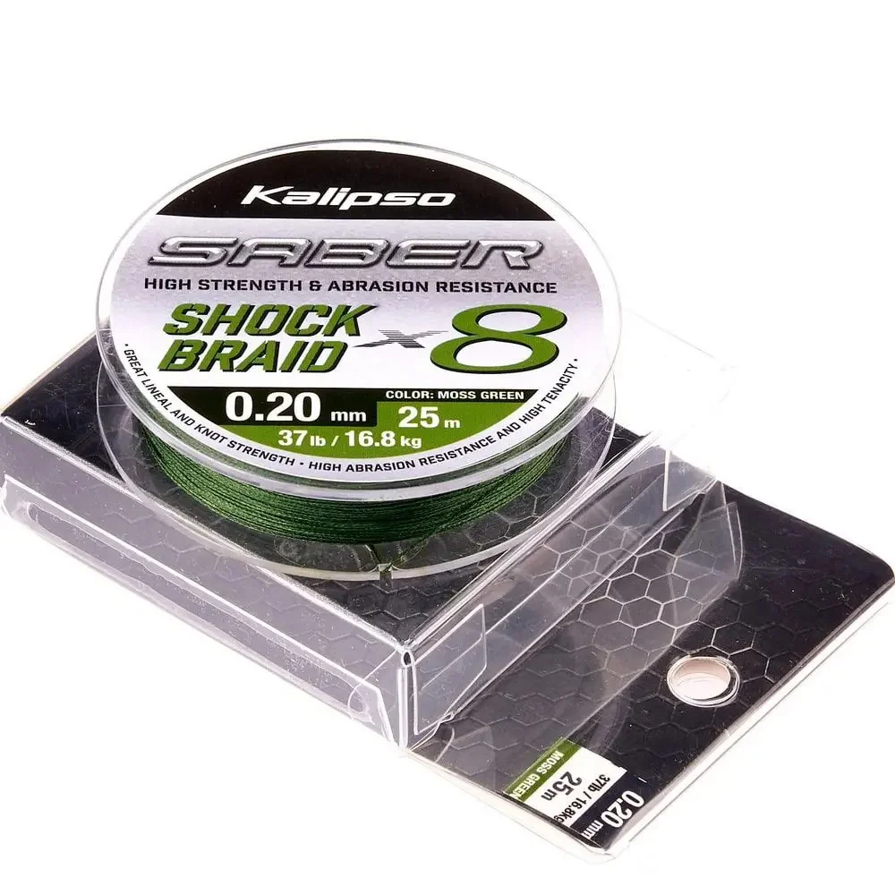 Шнур Kalipso Saber Shock Braid X8 - це високоякісний, сучасний 8-жильний матеріал, який має високу стійкість до абразиву і відмінно підходить для використання в якості шок-лідера.