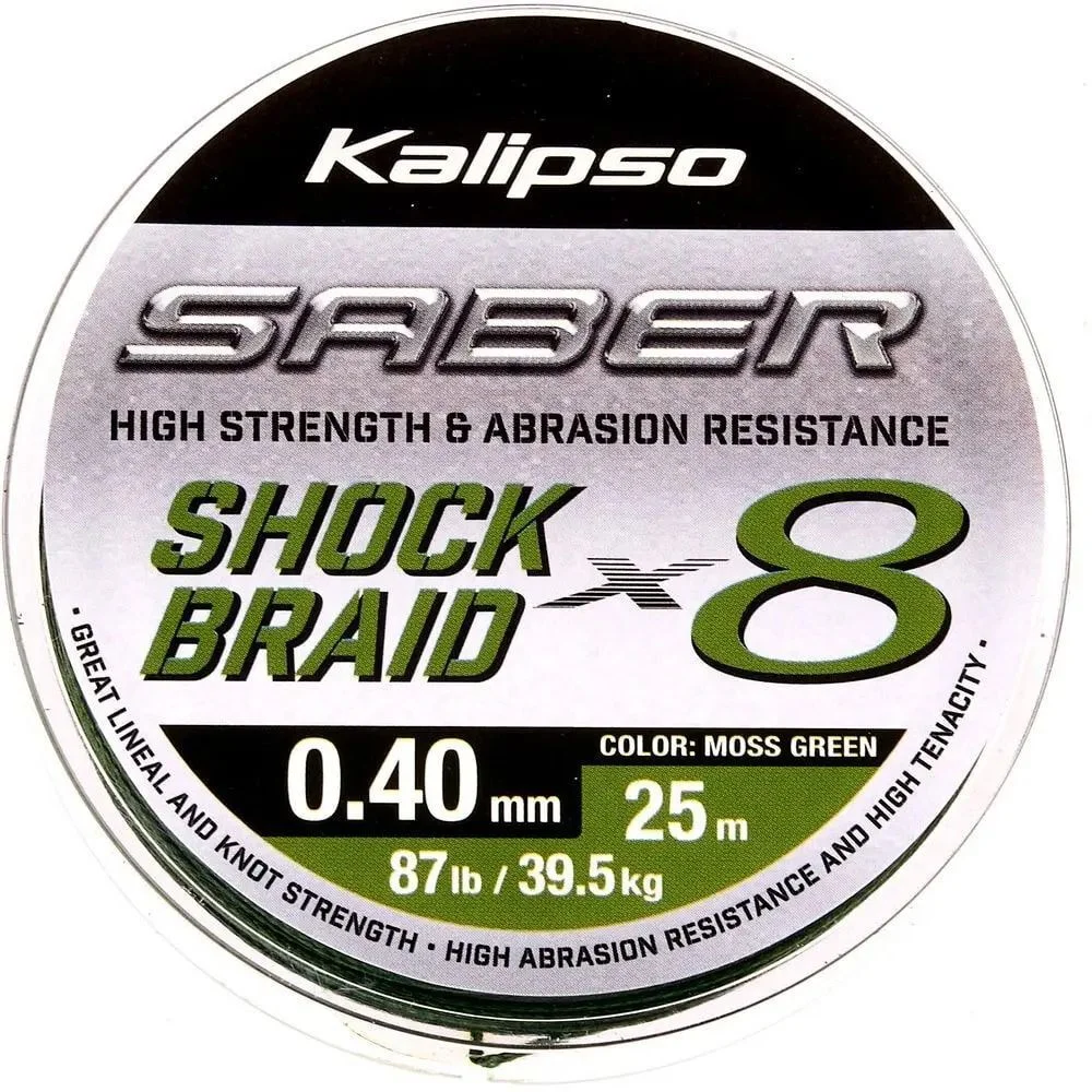 Шнур Kalipso Saber Shock Braid X8 - це високоякісний, сучасний 8-жильний матеріал, який має високу стійкість до абразиву і відмінно підходить для використання в якості шок-лідера.