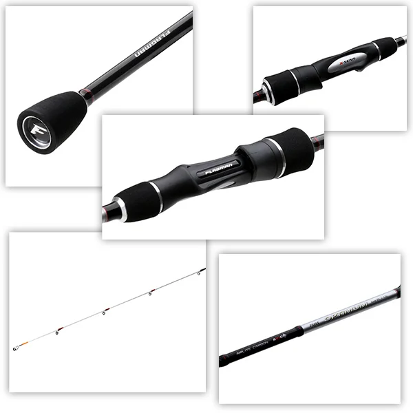 Flagman Optimum – новинка 2023 року – оновлена серія дуже легких та чудово збалансованих ультралайтових і лайтових спінінгових вудлищ зі складною швидкою дією X-Fast. Завдяки високомодульному карбону 30Т і застосуванню сучасних технологій вудлища стали ще більш легкими та більш чутливими, ніж раніше. Монолітні вклеєні вершини пофарбовано в білий колір, що робить їх добре помітними під час ловлі в сутінках. Зміни торкнулися і кілець. Тепер це однолапі пропускні кільця полегшеної конструкції зі вставками SIC, які забезпечують мінімальне тертя та абсолютно не перевантажують бланк, ще більше підвищуючи чутливість снасті. Рознесене руків'я з EVA оснащене надійним тримачем котушки й відмінно лягає в руку. Головна спеціалізація всіх моделей серії Optimum – ловля на надлегкі й легкі джигові приманки, із чим вони чудово справляються. Водночас вудлища Flagman Optimum прекрасно підходять і для ловлі на приманки інших типів у межах їхнього тестового діапазону. Швидка дія і спеціально підібрана жорсткість вершин забезпечують стовідсотковий контроль над анімацією легких джигових приманок + виконання далеких точних закидань, а помірна в'язкість бланків – упевнене виважування занадто жвавої риби. Flagman Optimum – це оптимальне рішення для широкого кола любителів спінінгової ловлі! Розміри і вага Довжина: 2.21 м Вага: 94 г Транспортна довжина: 117 см Конструкція і матеріал Кількість секцій: 2 Матеріал бланка: Графит (карбон) Матеріал руків'я: EVA Катушкотримач: IPS Тип вершинки: Solid Конструкція руків'я: рознесена Характеристики Тип вудлища: Спінінгове Дія: Надшвидка (X-Fast) Мінімальний тест: 2 г Максимальний тест: 12 г Комплектація Чохол: м`який (тканинний)