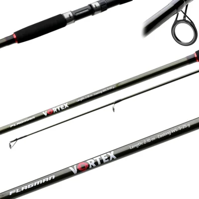 Вудилища спінінга Flagman Vortex можна охарактеризувати трьома словами - міцність, надійність, доступність. Серія включає моделі середнього і середньо-важкого класу, призначені для лову в найрізноманітніших умовах. Їхні потужні гнучкі бланки виготовлені з високоміцного композитного матеріалу. Під навантаженням в роботу включається більшість бланка, забезпечуючи прекрасні кастингові характеристики та амортизацію ривків риби. У той же час вудилища мають жорсткість, достатню для виконання складних нерівномірних проводок. FlagmanVortex оснащені полегшеними пропускними кільцями, що підвищує чутливість, розвантажує бланк та сприяє збільшенню дальності закидання. Практична рукоятка з EVA обладнана надійним гвинтовим котушкотримачем. Всі моделі серії Vortex спроектовані як багатоцільові, тому підходять для різних приманок і способів їх презентації.