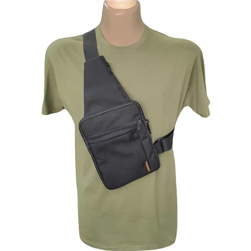 Розмір: 23*17,5*2,5см. Максимальна довжина шлейки - 134,5см. Матеріал: водонепроникний поліестр. Чоловіча сумка для документів з водостійкого матеріалу чорного кольору. Носять через плече на рівні грудей або живота, щоб потрібні дозволи, і телефон не губилися та завжди були під руками. Завдяки регульованому ременю змінюється висота сумки. Ремінь виготовлений з міцної зносостійкої стропи. Сумка зручна, практична, легко очищається від бруду та не пропускає вологу в середину, що важливо як для паперових документів, так і для електронних гаджетів. Сумка – месенджер Акрополіс СДД-2 має одне центральне відділення та 4 допоміжних кишеньки на замочку з якісною фурнітурою. Три невеличкі кишені розміщені спереду і одна прихована – зі зворотної сторони. Всі шви виконані армованою ниткою. Можна брати з собою на полювання, риболовлю, екскурсію і навіть у відрядження. Тут ви можете скласти найнеобхідніші аксесуари.