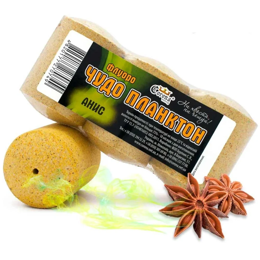 Одна з переваг технопланктону Корона - присутність у складі флуоресцентних компонентів. Завдяки цьому брикет, що розчиняється, активно "димить", до того ж флуоресцентна хмара має чудову видимість навіть у каламутній воді, привертаючи трофейного товстолоба з великої відстані.