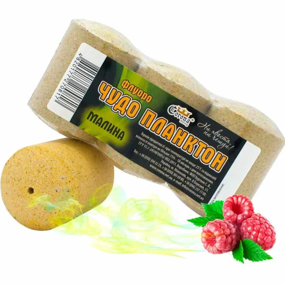 Чудо планктон Fluoro має дрібну структуру, виробляється за новою вдосконаленою рецептурою з порошкових компонентів, що включають кормову основу, UV пігменти та ароматизатори. При попаданні у воду Чудо Планктон поступово розчиняється, утворюючи добре помітну хмару каламуті, що імітує колонію планктону - природного корму багатьох видів риб.