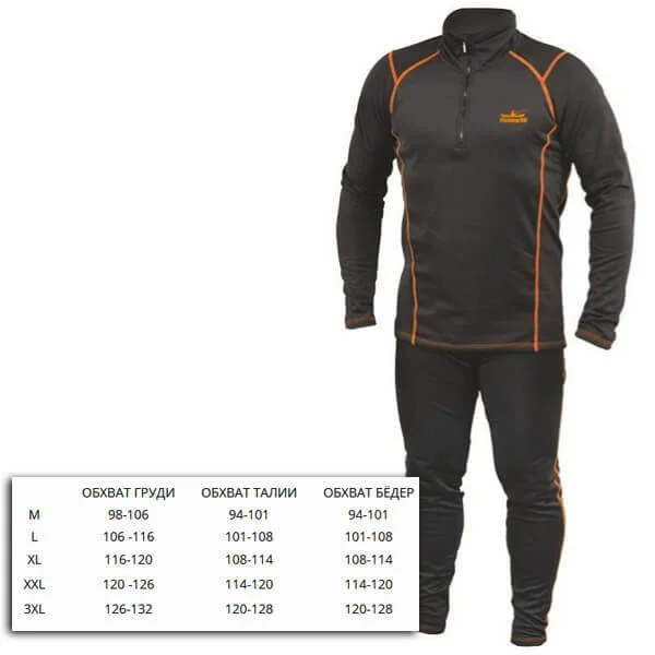 Зручна «дихаюча» термобілизна, скроєна з високоякісного матеріалу «Дайвінг-фліс». Щільний, м'який та легкий матеріал, який чудово зберігає тепло, забезпечуючи внутрішній комфорт при помірному фізичному навантаженні. Антиалергенний і антипіллінговий (не скочується), не натирає шкіру, приємний на дотик. Застібка-блискавка із внутрішньої сторони закрита матеріалом. Додатково для зручності на рукавах зроблені прорізи для великих пальців. Термобілизна "Fishing ROI" "Дайвінг-фліс" рекомендується використовувати при низьких мінусових температурах, коли особливо важливо зберегти тіло в теплі та сухості, не даючи людині замерзнути. Одягається тільки на тонку білизну. Після інтенсивної роботи або тривалого пересування, піт досить 15 - 20 хвилин для «виходу» назовні, за умови, що верхній одяг - мембрана. Тіло стає сухим і не замерзне на холоді. Тому, під термобілизну в жодному разі не піддягається бавовняний нижній одяг, який вбирає вологу і залишається сирим. Відмінно підійде як для риболовлі, полювання, так і для повсякденного носіння.