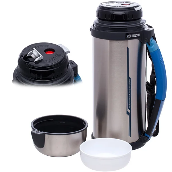 Це серія термосів із колбою з нержавіючої сталі. Ідеальний варіант для поїздок на дачу, виїздів на природу, риболовлю чи полювання. Серія включає різні за обсягом і кольором варіації, які припадуть до смаку навіть найвибагливішим покупцям. Міцність і легкість у поєднанні з чудовими показниками збереження температури, як завжди, відповідають високій планці, встановленій компанією Zojirushi. Завдяки прагненню компанії до інновацій і розвитку, в термосах вдалося зменшити вакуумний зазор в металевій колбі від стандартних 2мм до 1мм. Стінки колби виконати із високоякісної сталі зменшеної товщини. Це дозволило зробити термоса легшим і компактнішим, без шкоди можливостям зберігати температуру. Внутрішня частина колби має спеціальне покриття, стійке до нальоту та запаху (Non-Stick Coating). Це одна з найважливіших переваг і переваг не тільки цієї серії термосів, але і всієї продукції компанії Zojirushi. Завдяки цьому покриттю вміст не контактує безпосередньо з металом, зберігаючи природний смак та корисні властивості. Клапан кришки виконаний із високоякісних матеріалів. Є кнопковою конструкцією, в якій одна кнопка його відкриває, а друга відповідно закриває. Конструкція зроблена так, що при закритті термоса з відкритим клапаном він закривається автоматично. Особлива конструкція дозволяє налити дуже акуратно та без бризок Ваші напої. Все легко розбирається для промивання. Так що, ви не відчуватимете суп у вашому чаї. Термоса цієї моделі - найбільш об'ємні в лінійці з колбою з нержавіючої сталі. Хороші для далеких поїздок, риболовлі, полювання та просто пікніків. Для зручності використання оснащені ремінцем, що відстібається, і прогумованою ручкою. Вона дуже гармонійно і монолітно виглядає на термосі. Термоси цієї серії мають найширшу горловину - 70мм. Також, окрім стандартної кришки-кружки, до складу входить додаткова пластикова миска. Це значно розширює вибір вмісту, який Ви можете зберігати у своєму термосі. . Вакуумна колба з нержавіючої сталі, зсередини покрита тефлоновим покриттям, що дозволяє легко відмити від жирних речовин колбу; зручна, прогумована ручка, що складається; Температура води 100С, через 6 годин - 81С, через 24 години - 62С; Клавіша подачі/блокування води. Об'єм: 2,0л; Колір: срібло; Діаметр горловини: 70 мм; Габарити: 13x11.5x32.5см; Вага: 1000гр. Зроблено у Таїланді.