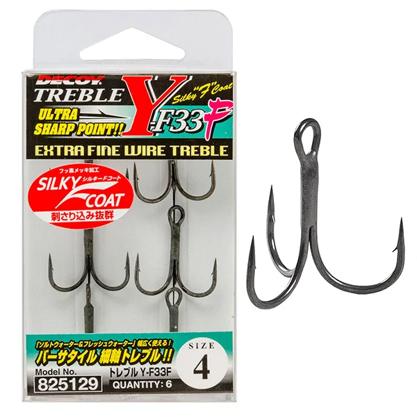 Трійник Decoy Y-F33F має класичну форму, відповідну для установки на воблери, блешні і силіконові приманки. Його особливістю є тефлонове покриття, що полегшує проникнення жала в пащу риби, і зменшує відблиски. Високоякісне заточення і мікроборідка гарантують вдале підсікання риби, при цьому, виключаючи її раптовий схід. Широкий модельний ряд дозволяє оснастити якісними трійниками приманку практично будь-якого розміру.nnnКраїна виробник: Японія nВид оснащення: Гачок nКількість в упаковці, шт: 5 nТип гачка: Потрійний nНомер гачка, №: 1 nКраїна походження: Японія nМаса, г: 3.5