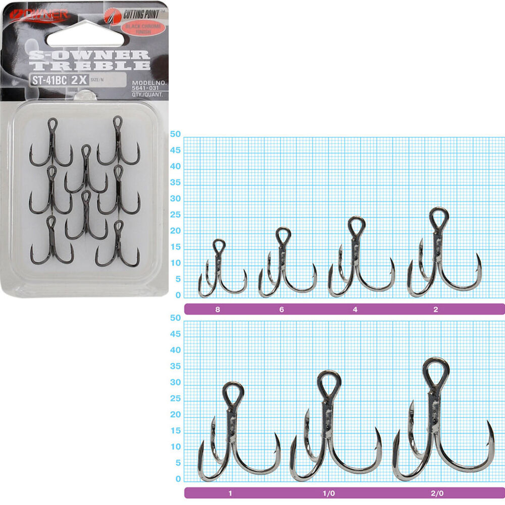 Трійники Owner 2X 5641-ххх - одні з найпотужніших та надійних трійників, що випускаються Owner. Виготовлені з дуже міцного дроту, що пройшов спеціальну технологічну обробку. Характеризуються круглим загином, трохи укороченою цівкою та найдосконалішим на сьогодні заточуванням жала Cutting Point. Можуть використовуватися для риболовлі, як у прісній, так і солоній воді.