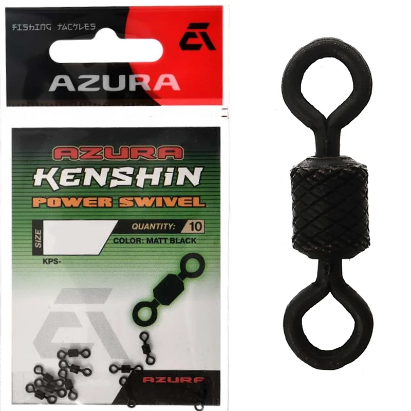 Azura Kenshin Power Swivel – надійний і потужний класичний вертлюг, який виготовлено зі сталевого дроту найвищої якості. Azura Kenshin Power Swivel – важливий елемент монтажу, що запобігає перекручуванню жилки під час ловлі активними та обертовими приманками, особливо на течії. Ідеально поєднується з джиговими приманками, блешнями, воблерами тощо. Також вертлюги Azura Kenshin Power Swivel підійдуть для виготовлення різноманітних риболовних оснасток і монтажів як у лайтовій ловлі, так і у важкому джигінгу та тролінгу. Доступні в широкому спектрі розмірів із різним розривним навантаженням. Колір захисного покриття: Matt Black.