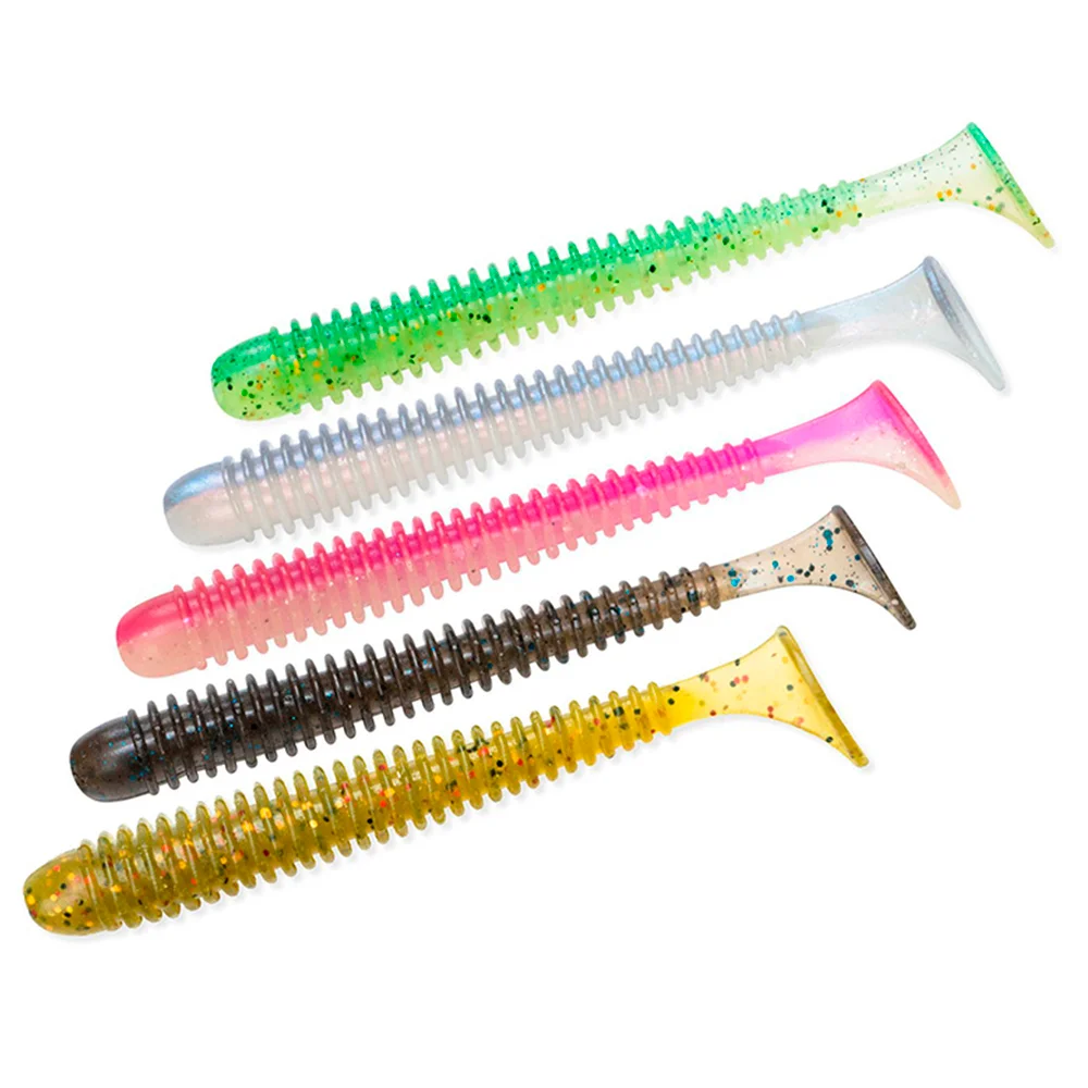 Матеріл приманки дуже м’який тому хвост заводиться на найменшій швидкості та на вазі грузів від 1г. Сіль в нижній частині приманки стабілізує її на проводці та утримує тіло приманки в правильному положенні у воді.