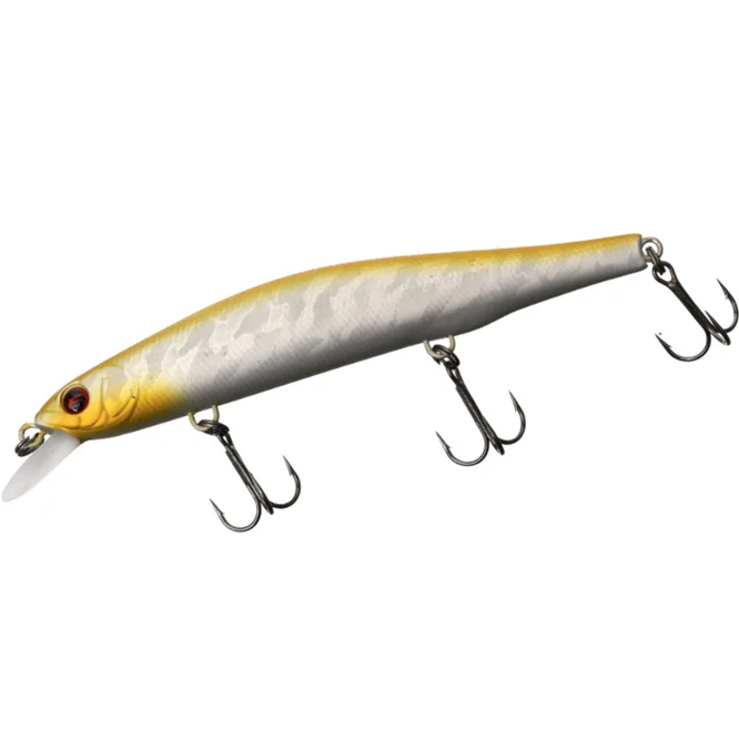 Flagman Joker 110SP – один із класичних воблерів мінноу, який створено спеціально для ривкового проведення. Цю шумливу й дуже дзвінку приманку виготовлено з високоякісного пластику, вона має міцне багатошарове фарбування, оснащена найгострішими гачками VMC і посиленими завідними кільцями. Воблер Flagman Joker 110SP обладнано магнітною системою далекого закидання і балансування. Він має нейтральну плавучість (суспендер), що дає змогу довго утримувати його в найпривабливіших точках проведення. Має слабко виражену малоактивну власну гру, тому використовувати рівномірне проведення доцільно лише проти течії або за високої швидкості підмотування. На ривковому проведенні, для якого воблер і призначено, він розкривається повністю: робить довгі уходи в боки дугоподібною траєкторією, а після зупинки продовжує певний час погойдувати боками, демонструючи згасаючий ролінг. Flagman Joker 110 – справжній універсал, здатний чудово працювати в будь-якому темпі ривкового проведення. Він показує бездоганні результати як на агресивному ударному проведенні, так і на м'якому затухаючому твічингу. Низку моделей покрито 3D фольгою («бите скло»), а також унікальною фарбою, яка світиться в ультрафіолеті, через що воблер буквально сяє всім тілом у товщі води, приваблюючи хижака з великих відстаней. Приманки Joker 110SP, насамперед, зацікавлять любителів ловлі щуки. Втім, і мисливці на судака гідно оцінять можливості цих унікальних воблерів. Розмір (діапазон): 110-130 мм Довжина: 11 см Вага (діапазон): 12-21 г Вага: 16.7 г Заглиблення: 0.5-1.5 м Плавучість: Суспендр