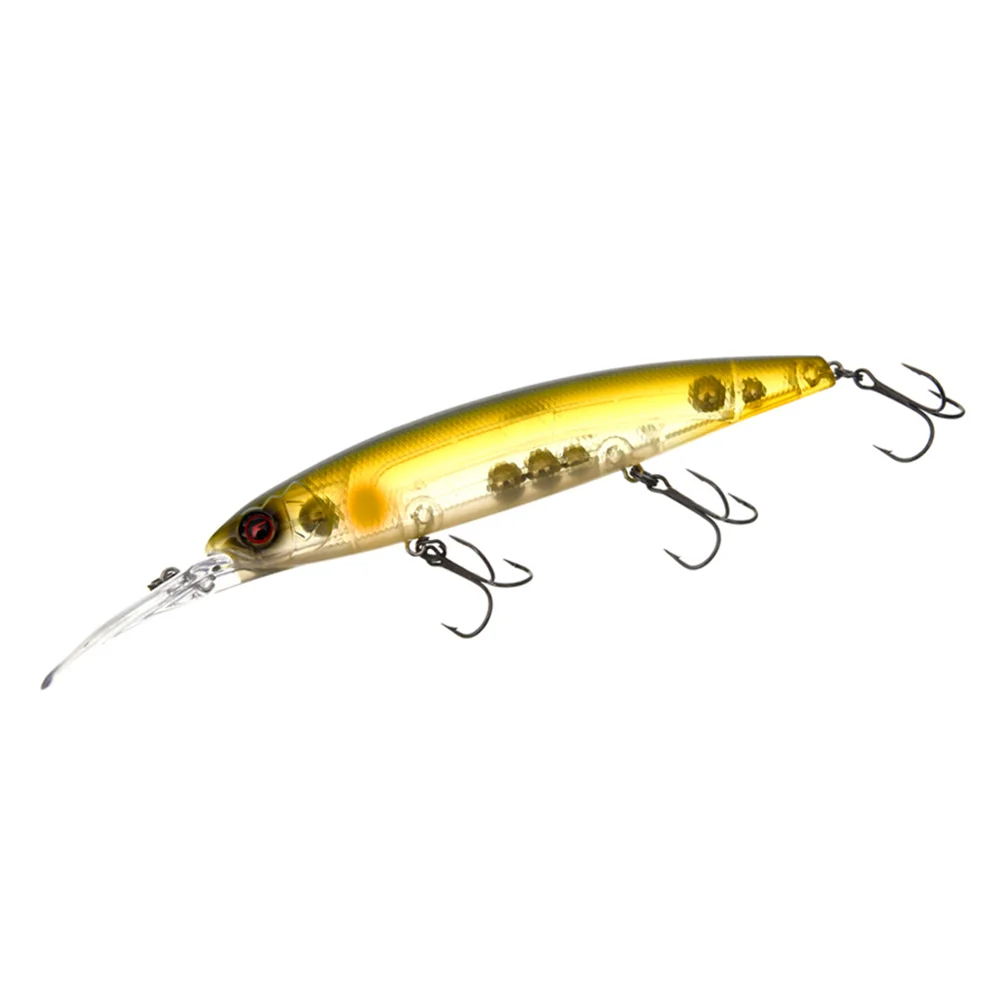 Flagman Kraken 130SF-DR - воблер геометрії мінно,у який розроблений спеціально для ривкової проводки. На рівномірній проводці приманка має слабку власну гру, а ось при твичинзі Flagman Kraken розкриває весь свій потенціал. Будучи досить наполегливою приманкою, він несильно відхиляється в сторони, роблячи при цьому досить довгі проходи і здійснюючи під час руху нахили з боку в бік. Після зупинки Kraken деякий час похитує боками, демонструючи загасаючий роллінг (rolling action), а потім починає повільно спливати, провокуючи такою поведінкою на атаку навіть малоактивного хижака. Приманка володіє великим лобовим опором і, щоб розкрити її потенціал, краще використовувати жорсткі вудлища, які дозволяють зробити потужний акцентований ривок. Flagman Kraken 130 SF-DR здатний працювати на різних темпах ривкової проводки. Крім того, відмінні результати він показує і на різких підтяжках. Воблер шумовий, обладнаний магнітною системою далекого закидання. Має невелику позитивну плавучість, що, з одного боку, дозволяє обходити підводні перешкоди, з іншого - легко утримувати приманку в найпривабливіших горизонтах проводки. Комплектується надійною фурнітурою, гострими і легкими трійниками VMC. Більшість моделей Kraken 130SF-DR покриті унікальною фарбою, яка світиться в ультрафіолеті, що є додатковим стимулом для хижака атакувати приманку.