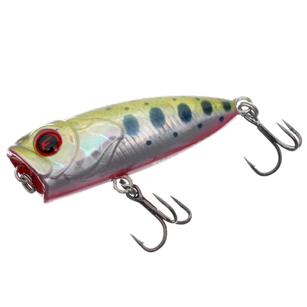 Flagman Swoky 40 F – серія поверхневих приманок від відомого виробника. На цей маленький спритний поппер можна зловити практично будь-яку рибу, що годується біля водної поверхні. На певній частоті ривків та при їх невеликій амплітуді поппер Swoky 40F починає виляти на всі боки, стаючи чудовою приманкою як для хижої, так і для напівхижої риби. Крім звичних окунів, щуки та жереха, на Flagman Swoky нерідкі клювання голівня, краснопірки, язя, чехоня та навіть верховодки! Приманка має відмінні польотні якості, чудово грає, видає звуки. До того ж, частина моделей Swoky 40 F покрита унікальною фарбою, яка світиться в ультрафіолеті, чудово залучаючи своїх «жертв» у похмуру погоду та при недостатній освітленості. Flagman Swoky 40F комплектується надзвичайно гострими та легкими трійниками VMC, які чудово утримують рибу. Цей галасливий та уловистий малюк, безсумнівно, припаде до смаку як рибі, так і любителям ультралайтової ловлі. Розмір (діапазон): до 50 мм Довжина: 4 см Вес (діапазон): до 5 г Вес: 3.1 г Заглиблення: 0 м Плавучість: плаваючий