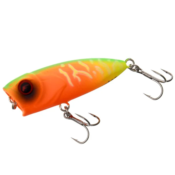 Flagman Swoky 40 F – серія поверхневих приманок від відомого виробника. На цей маленький спритний поппер можна зловити практично будь-яку рибу, що годується біля водної поверхні. На певній частоті ривків та при їх невеликій амплітуді поппер Swoky 40F починає виляти на всі боки, стаючи чудовою приманкою як для хижої, так і для напівхижої риби. Крім звичних окунів, щуки та жереха, на Flagman Swoky нерідкі клювання голівня, краснопірки, язя, чехоня та навіть верховодки! Приманка має відмінні польотні якості, чудово грає, видає звуки. До того ж, частина моделей Swoky 40 F покрита унікальною фарбою, яка світиться в ультрафіолеті, чудово залучаючи своїх «жертв» у похмуру погоду та при недостатній освітленості. Flagman Swoky 40F комплектується надзвичайно гострими та легкими трійниками VMC, які чудово утримують рибу. Цей галасливий та уловистий малюк, безсумнівно, припаде до смаку як рибі, так і любителям ультралайтової ловлі. Розмір (діапазон): до 50 мм Довжина: 4 см Вес (діапазон): до 5 г Вес: 3.1 г Заглиблення: 0 м Плавучість: плаваючий