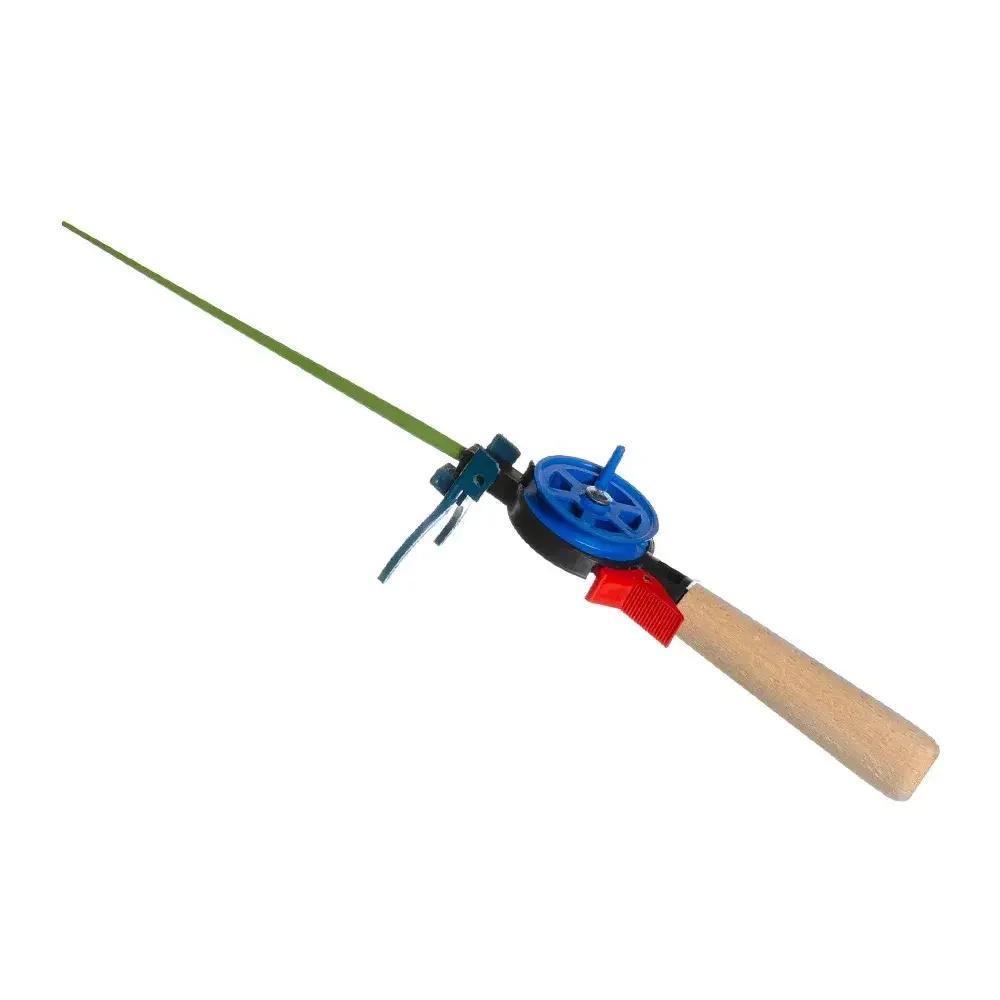 Вудка для зимової риболовлі - вудка з дерев'яною ручкою та закритою шпулею Класична компактна вудка для зимової риболовлі з «теплою» рукояткою із шліфованого дерева, закритою шпулею, що захищає волосінь від заплутування та додатковою підставкою для лову на поплавок.