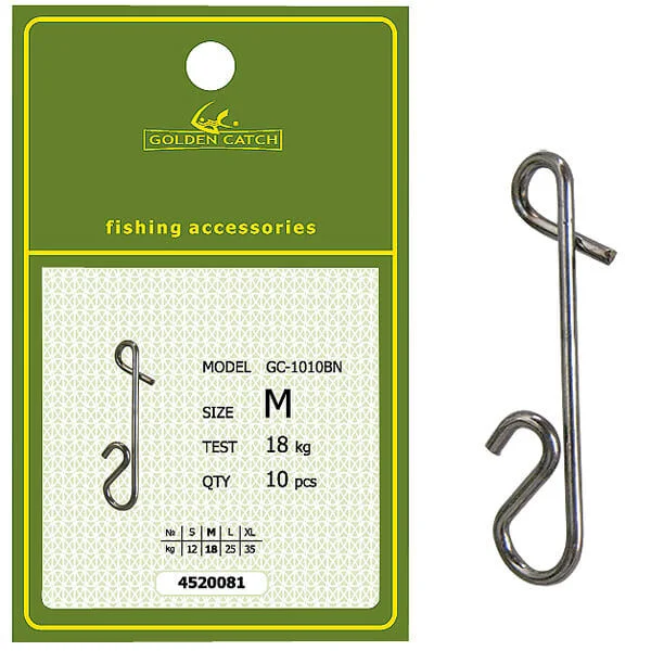 Без вузлового з'єднання Golden Catch 1010BN дозволяє швидко прикріпити приманку до шнура або волосіні без застосування вузлів. Найбільш часто використовується в спінінговому лові або нахлисті. Завдяки своїм невеликим розмірам застібка ідеально поєднується з легкими приманками. Крім цього, цю модель можна з успіхом застосовувати і для риболовлі в зимовий час, наприклад при лові на балансири або стрімкі блешні.