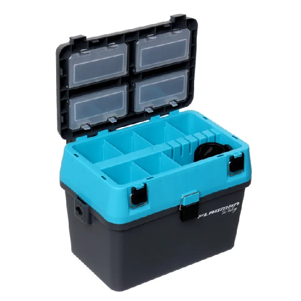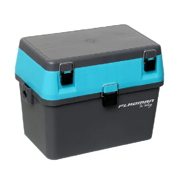 Рибальська скринька Flagman, призначена для лову з льоду. Виготовлений із пружного удароміцного пластику, що не втрачає своїх властивостей за низьких температур. Згладжені кути забезпечують травмобезпеку на рибалці. Скринька має два відділення. Нижнє, основне, служить для зберігання улову, термоса з чаєм і т. д. Найменше верхнє відділення, що закривається окремою кришкою і знімні перегородки, призначене для вудок і приманок. Кришка обладнана чотирма вбудованими секціями, що закриваються окремими кришками. Для перенесення ящика служить регульований плечовий ремінь. Розміри, див: 37х23х29 (ДхШхГ).